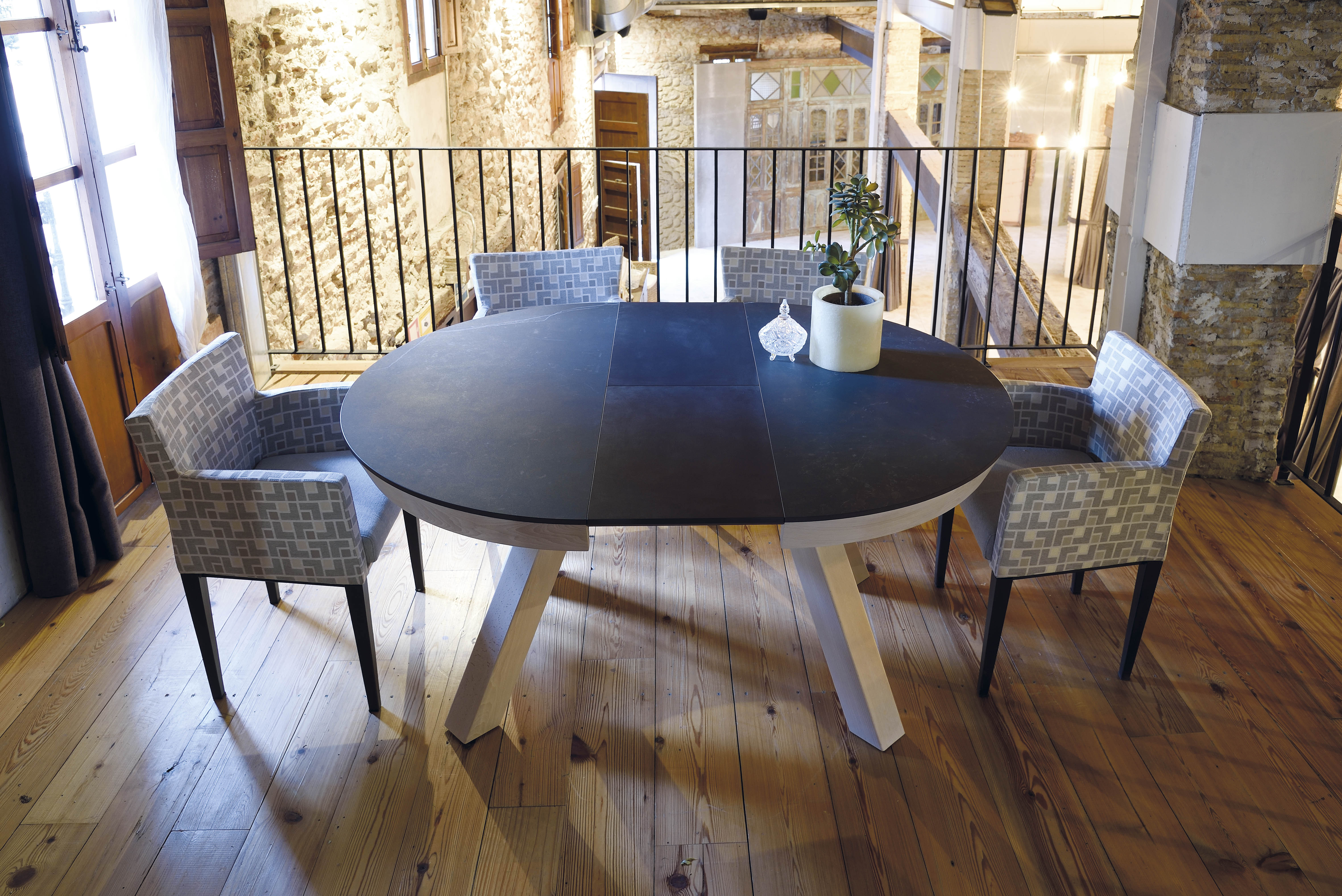 Avec des tables en céramique : Pour souligner son caractère moderne et technologique.