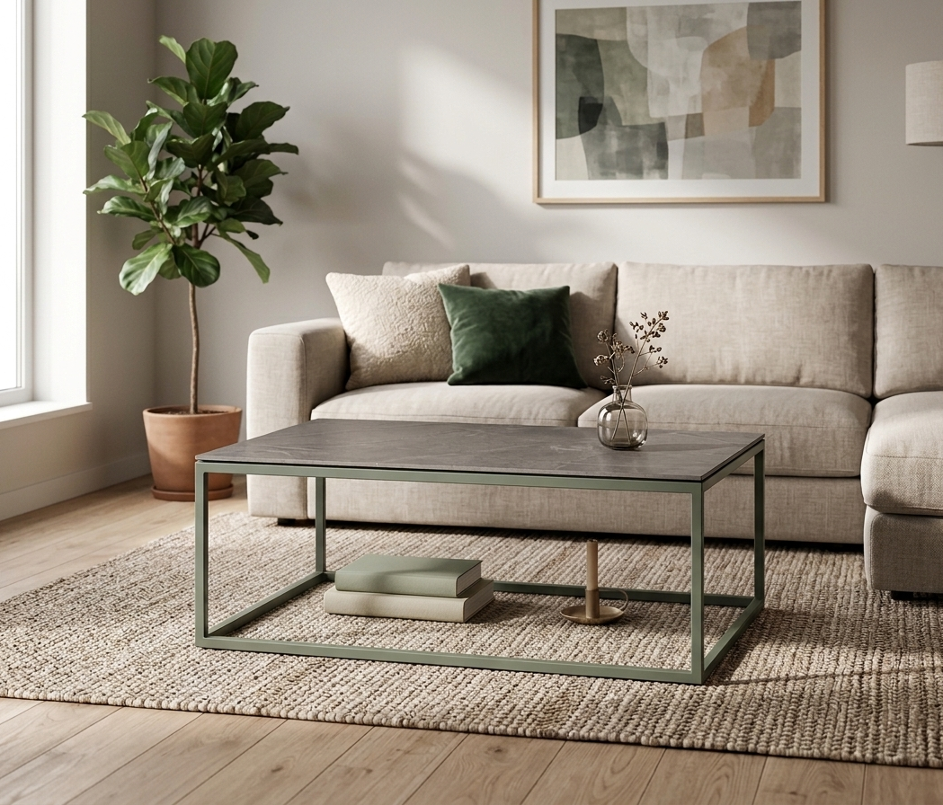 The Paris coffee table is an exercise in architectural minimalism. Its base, constructed from high-resistance steel tubing, creates a visually lightweight structure that allows the living room to “breathe.” It is the perfect piece for those seeking functionality without sacrificing a clean, avant-garde aesthetic.