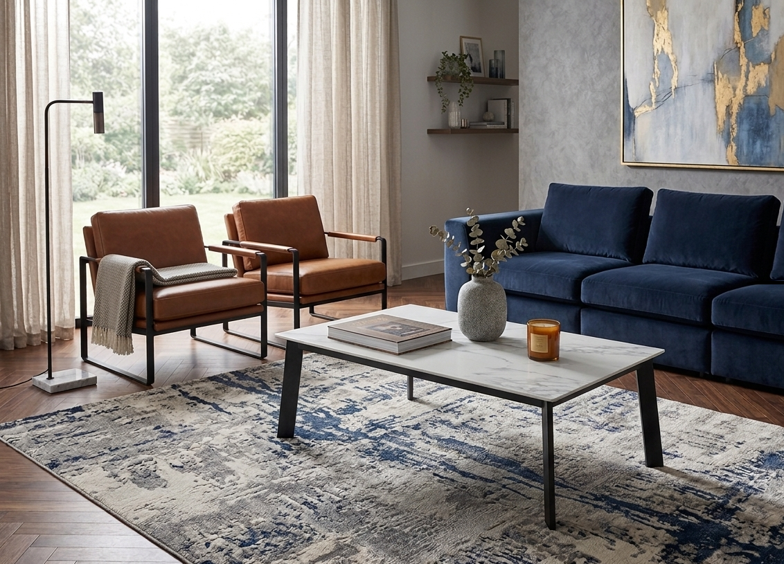 Como norma general, recomendamos que la mesa de centro mida entre la mitad y los dos tercios del largo total de tu sofá. Para sofás de 3 plazas, las medidas de 110×70 cm o 120×80 cm suelen ser las más equilibradas visualmente.