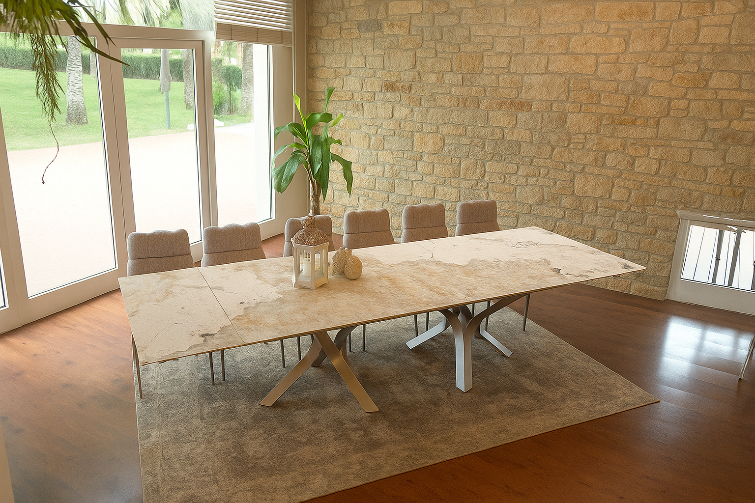 La versatilidad de Dekton lo hace ideal para cualquier aplicación, incluso en las condiciones más exigentes como mesas de comedor, muebles, consolas o mesas de centro.
