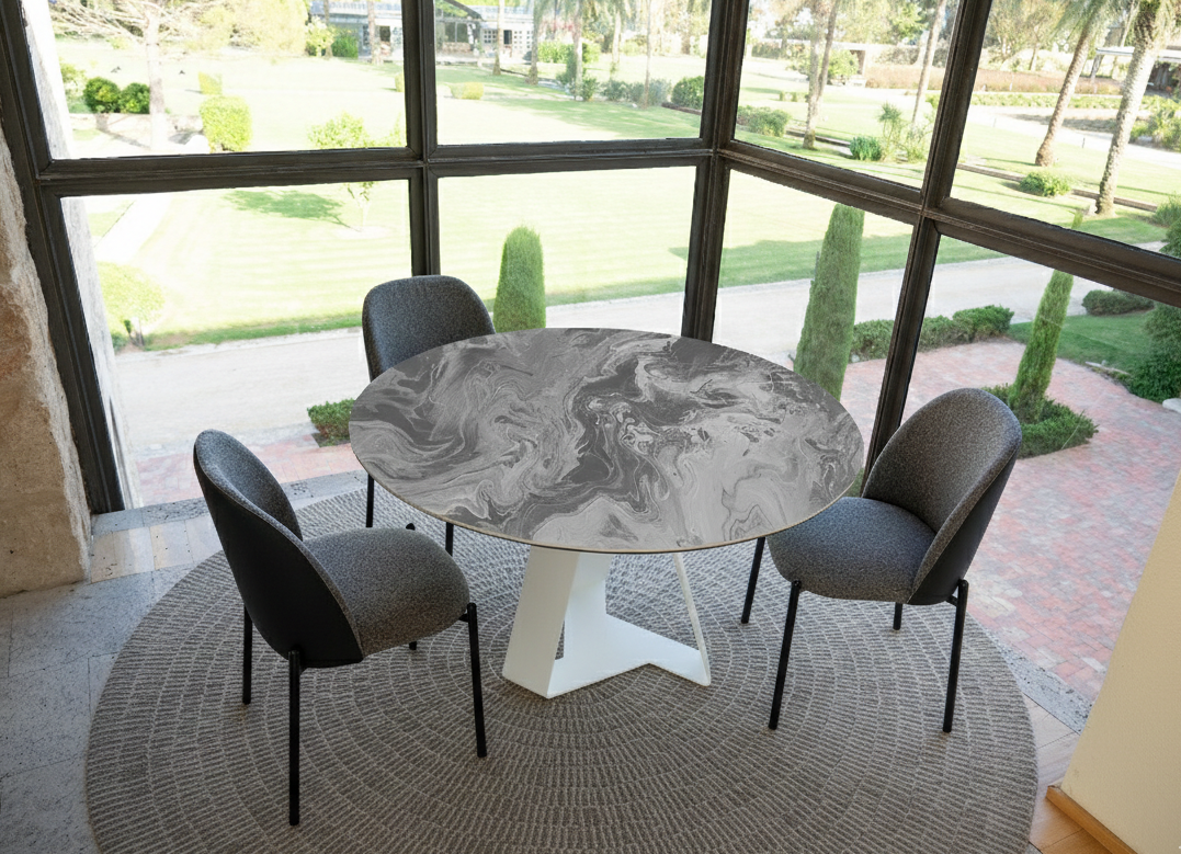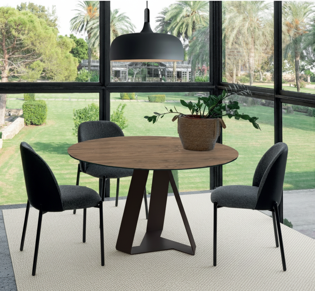 Der Esstisch Carcassonne 1F vereint die Stärke von Stahl mit der Eleganz von Metallplatten. Dank seines umlaufenden Beindesigns, das die Konstruktion harmonisch umschließt, ist er das ideale Möbelstück für alle, die einen Esstisch mit Präsenz, absoluter Stabilität und zeitloser, moderner Ästhetik suchen.