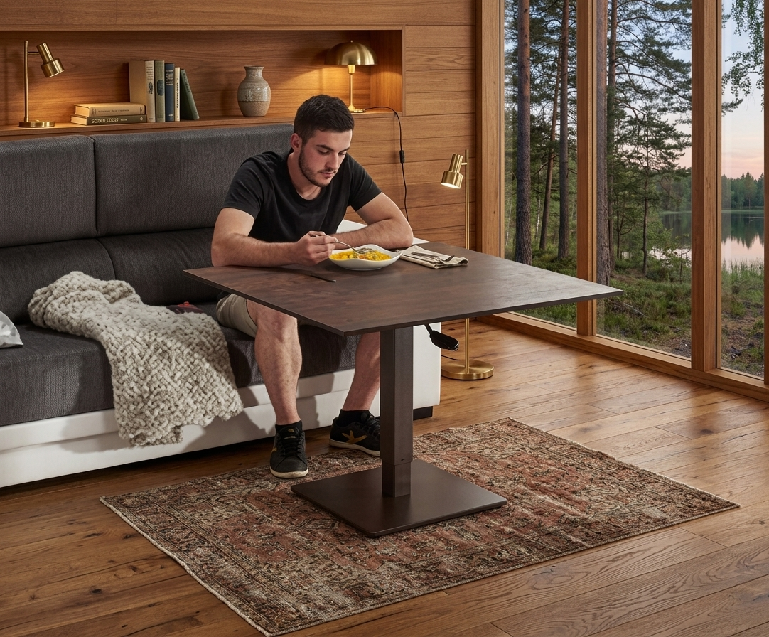 Estabilidad Total: Una vez elevada, la presión del pistón bloquea la posición para que puedas cenar o trabajar con tu portátil sin el molesto «balanceo» de las mesas de gama baja.