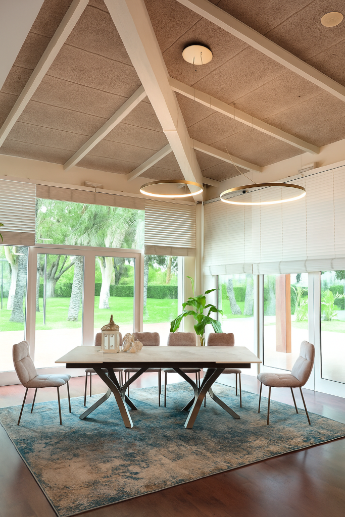 Tout est dans les détails : de la chaleur de la table avec son magnifique plateau en Dekton Khalo à la douceur des chaises crème, en passant par l’harmonie de l’espace.