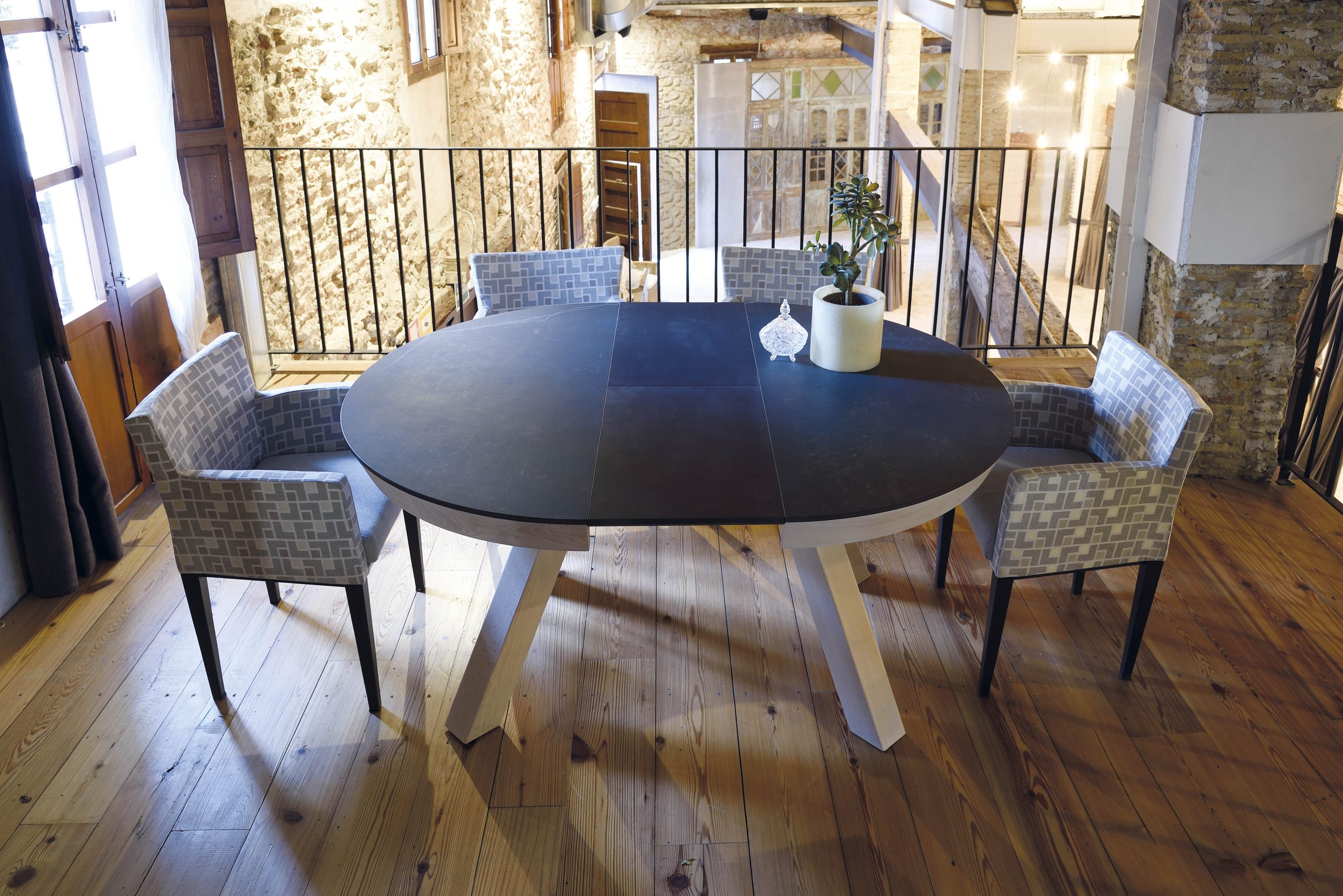 Jesi ofrece un abanico de posibilidades cromáticas y de texturas. Su diseño atemporal permite que combine a la perfección con mesas de diferentes materiales: