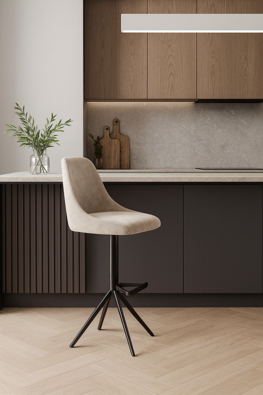 Each unit of the Gina Stool is manufactured to order at our facilities in Spain, combining precision technology with artisanal upholstery expertise. This guarantees a durable, aesthetic piece designed to withstand the demands of daily use.